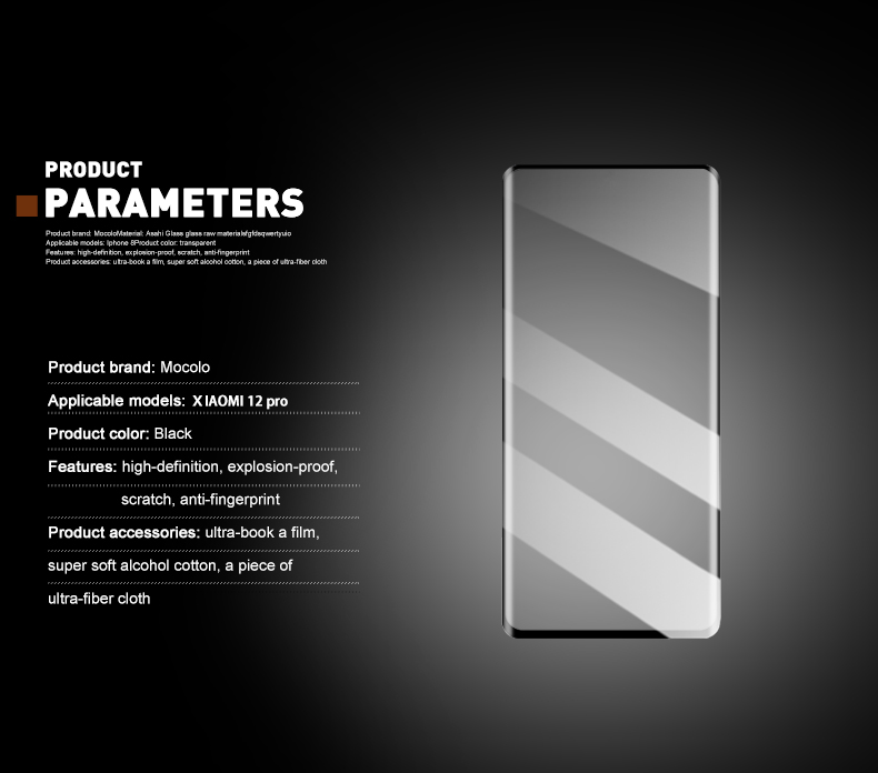 | Nombre del prod. | Mocolo 3D 9H Full Glue - Cristal de protección de pantalla completa para Xiaomi 12 Pro (Negro) |