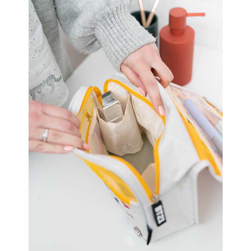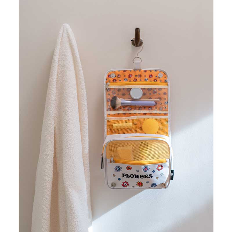 Eco-friendly hanging bag, cosmetic bag with LineFriends BT21 motif made of 100% cotton. Dimensions: 20 x 25 x 9.5 cm.