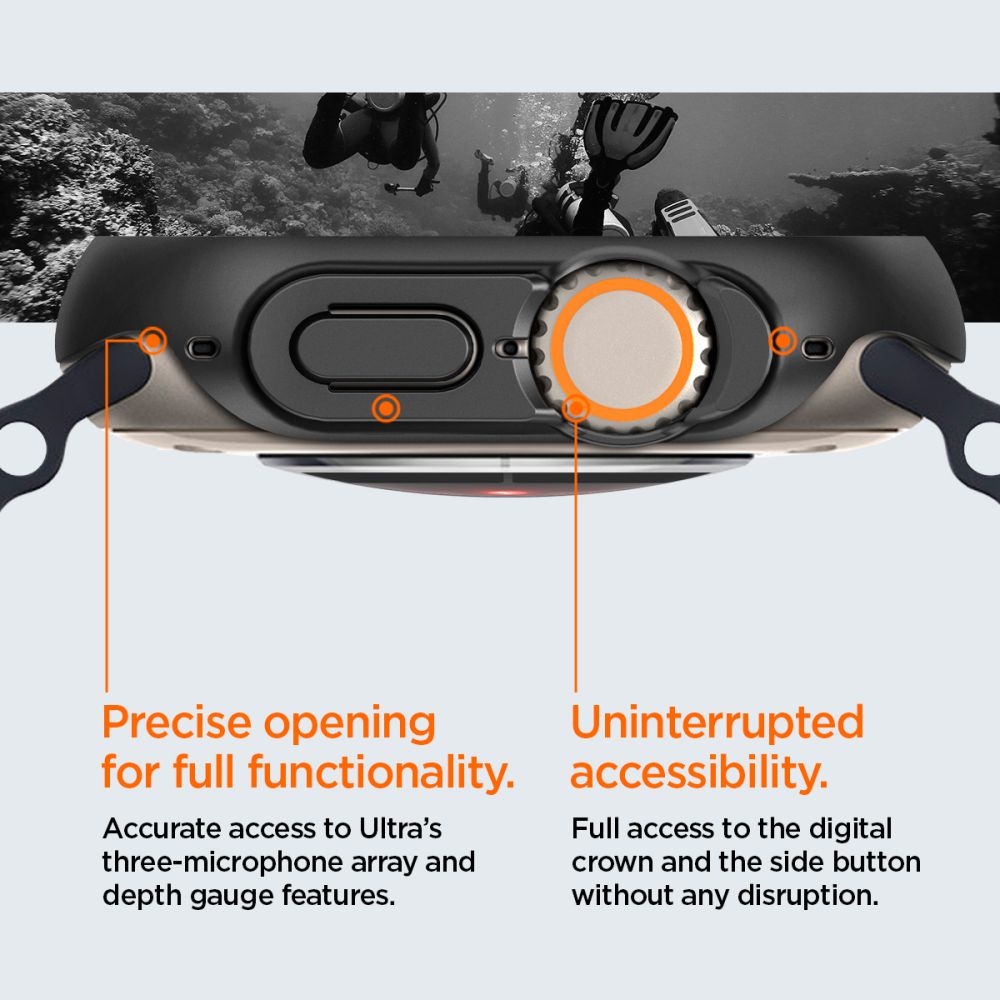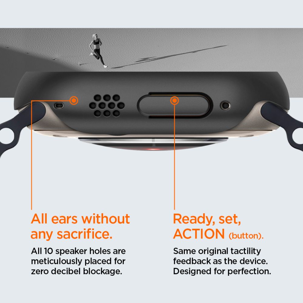 Spigen Thin Fit® do Apple Watch Ultra to minimalistyczne etui ochronne, którego powłoka została wykonana z poliwęglanu. Smukła konstrukcja nie powiększa urządzenia.