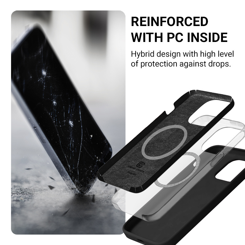 Die aus flüssigem Silikon gefertigte Color Cover Magnetic Schutzhülle für das iPhone 14 / iPhone 13 mit integriertem Magnet für Ladegerät und Zubehör von MagSafe. Ein spezieller Ring im Inneren der Hülle sorgt dafür, dass das MagSafe-Ladegerät und anderes Zubehör in die Crong-Hülle passen und perfekt am Apple-Handy haften.