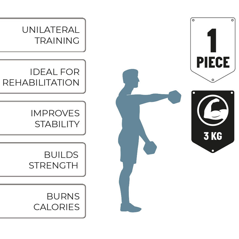 Doskonale uzupełni twój trening mięśni rąk i górnych partii ciała, a także wesprze poprawę koordynacji ruchowej. Użyjesz go podczas ćwiczeń ogólnorozwojowych czy fitness. Hantel idealnie sprawdzi się zarówno dla początkujących, jak i zaawansowanych sportowców.