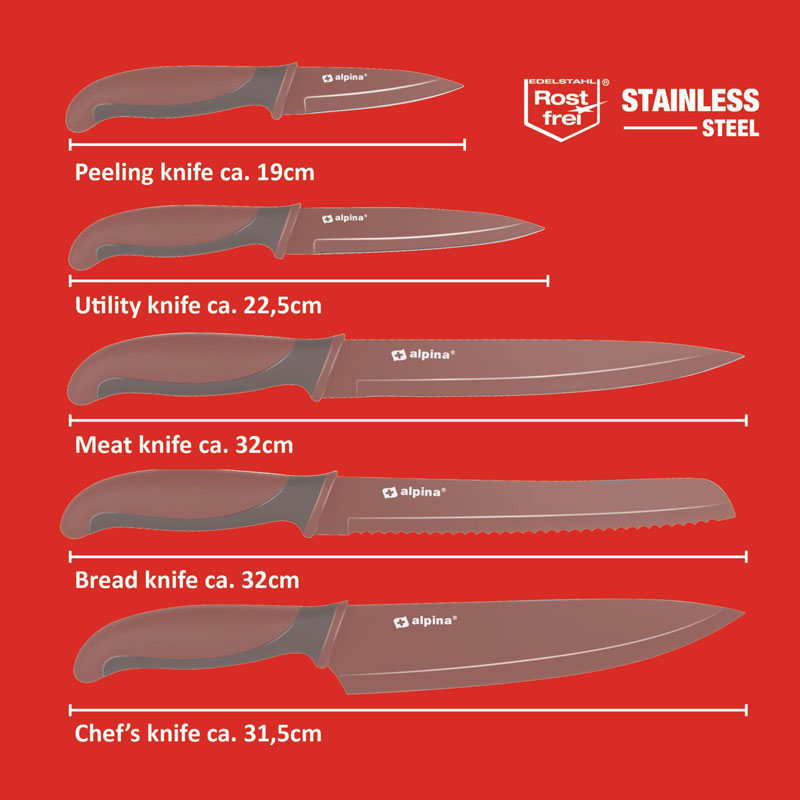| Nazwa prod. | Alpina - Zestaw noży ze stali nierdzewnej (bordowy) |