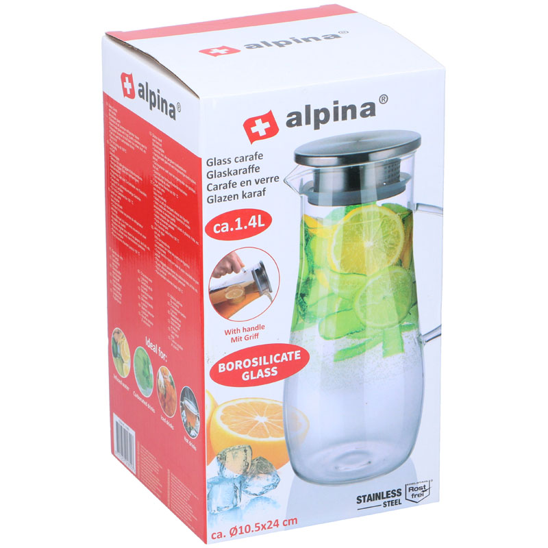 Szklana karafka z uchwytem ze szkła borokrzemowego, która mieści 1,4 litra, jest idealna do letniego przygotowywania mrożonych napojów, ale także herbaty.