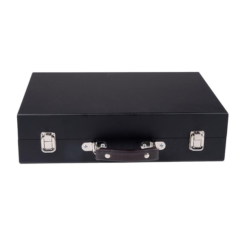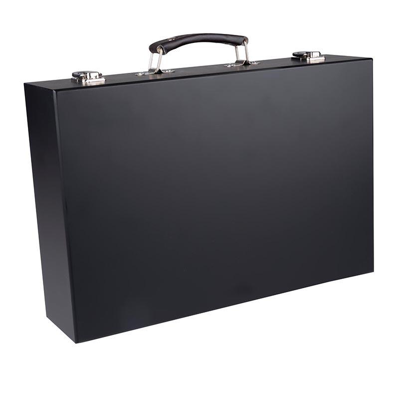 All items are neatly and clearly stored in a sturdy black case made of FSC wood. The painting and drawing case has two layers on each side, which can be opened with metal hinges. This way, you can see exactly where everything is and have easy and quick access to it.