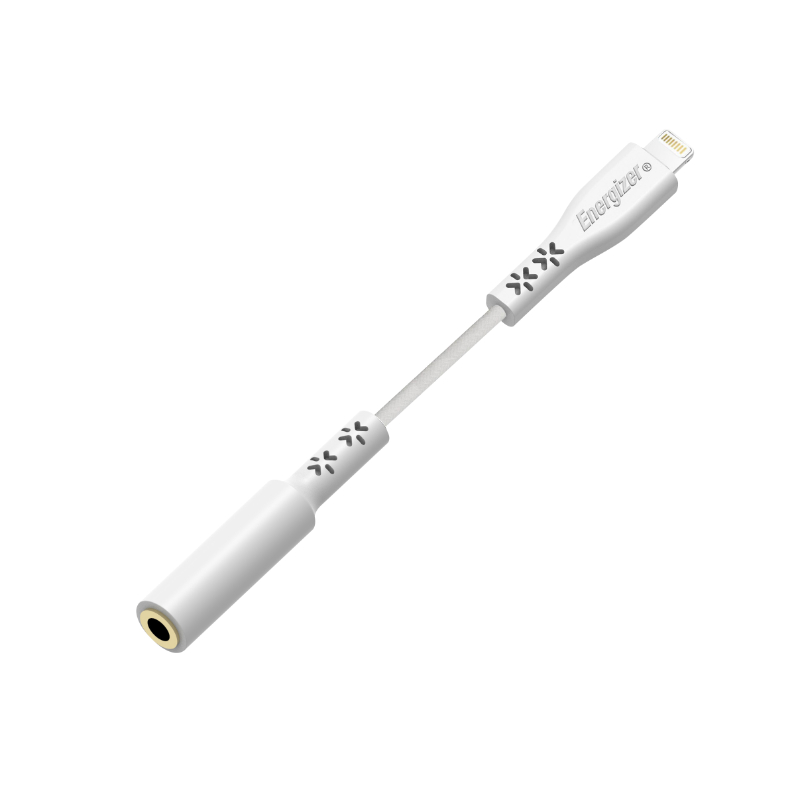 El adaptador Energizer HardCase permite conectar dispositivos de audio con entrada de conector jack de 3,5 mm a dispositivos con conector Lightning. El adaptador cuenta con la certificación MFi de Apple. Los productos Energizer HardCase tienen garantía de por vida (es necesario registrar el producto en el sitio web del fabricante).
