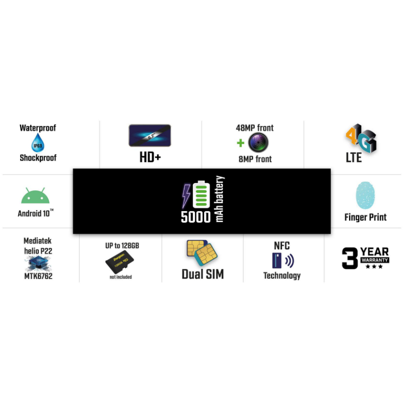- Incluye: 1 smartphone Energizer HardCase H620S, 1 cargador, 1 auriculares, 1 cable, 1 manual de usuario