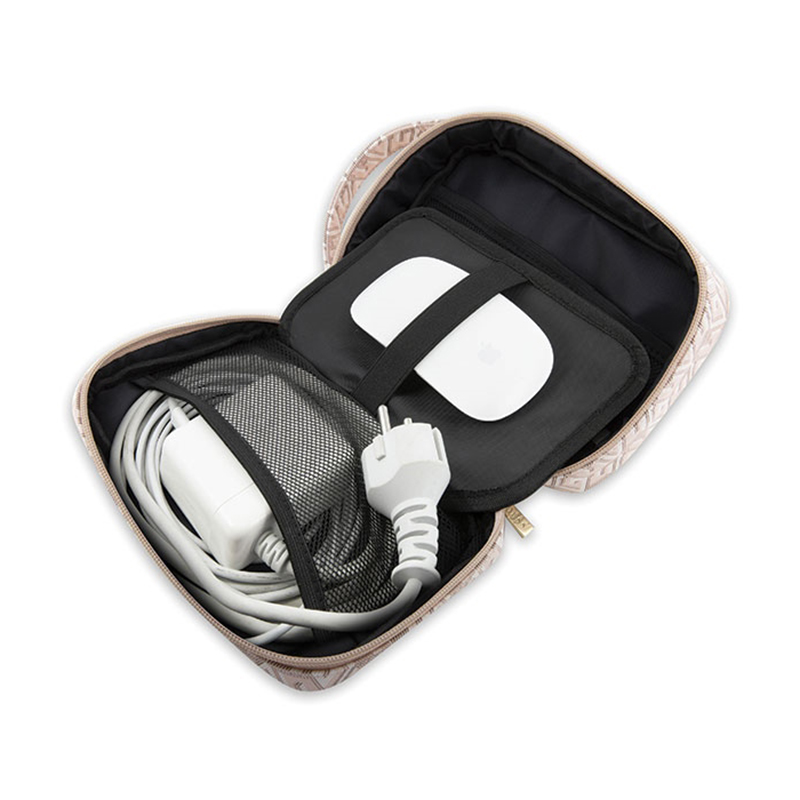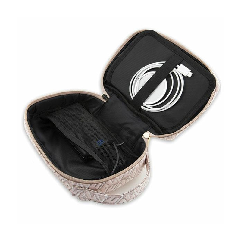 It is ideal for travelling. It allows you to have at hand all the electronic accessories you need for short or longer journeys. The organiser features several internal pockets to keep things tidy and prevent stored accessories from moving around. Comfortable handle.