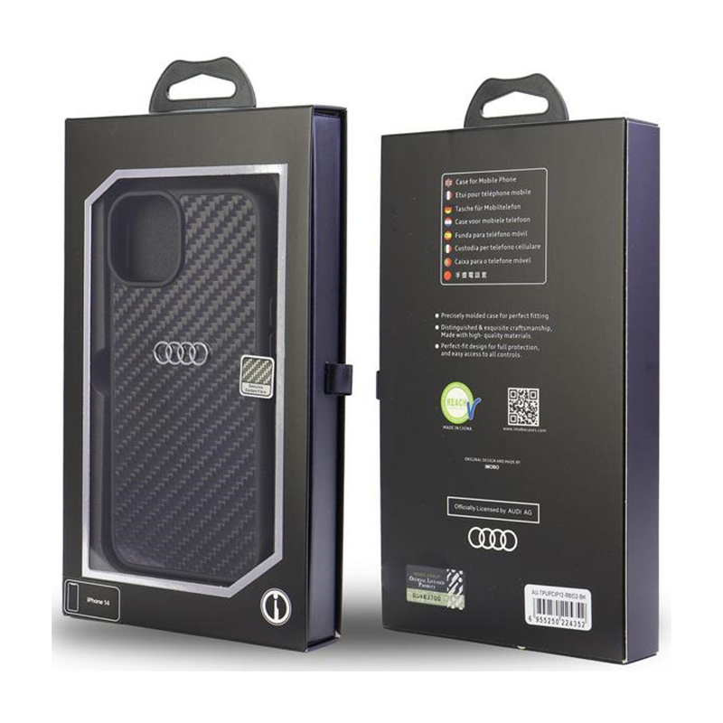 Etui serii Audi Carbon Fiber wykonano w trosce o najmniejszy szczegół oraz perfekcyjne dopasowanie do smartfona. Powłoka wykonana z termopoliuretanu, który zapewnia ochronę i łatwy montaż. Etui zostało ozdobione wzorem tkaniny węglowej, która nadaje nowoczesnego i luksusowego wyglądu. Na środku znajduje się logo Audi.