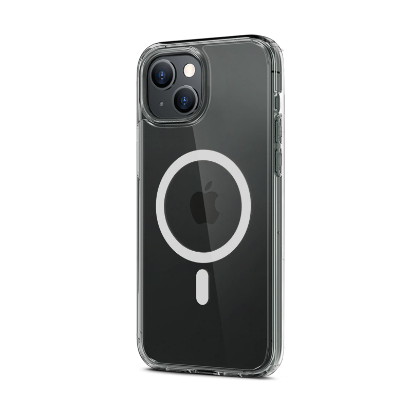 Przezroczyste etui ochronne do iPhone’a 15 z wbudowanym magnesem do ładowarki i akcesoriów MagSafe. Ukryty w hybrydowej powłoce pierścień magnetyczny (składający się z 39 mniejszych magnesów) sprawia, że ładowarka oraz pozostałe akcesoria MagSafe dopasowują się do telefonu za każdym razem w idealny sposób.