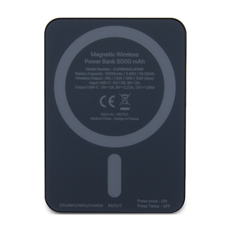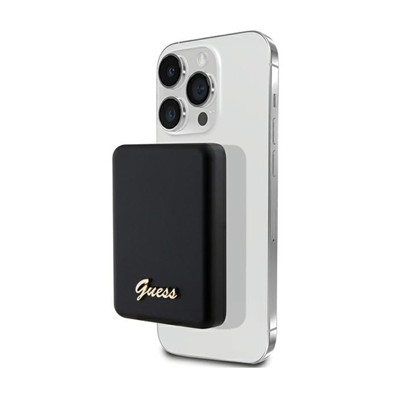 | Name des Erzeugnisses. | Guess Metal Script Logo MagSafe - Power Bank induktiv 5000 mAh 15W MagSafe (schwarz) |