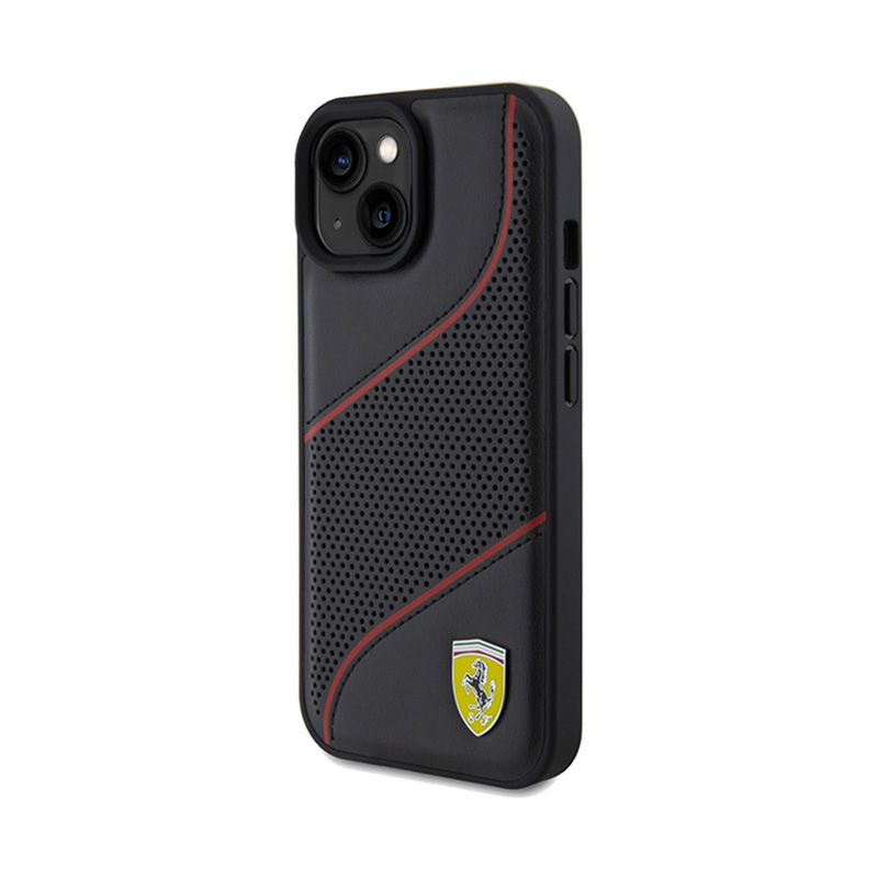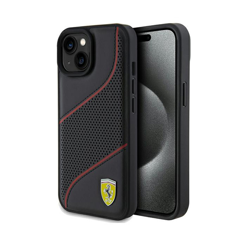 | Nazwa prod. | Ferrari Perforated Waves Metal Logo - Etui iPhone 15 (czarny) |