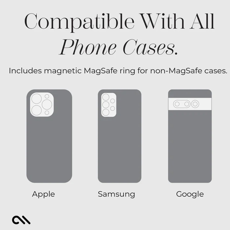 Zestaw zawiera pierścień magnetyczny MagSafe, który z łatwością przyczepisz do tylnej części obudowy telefonu lub etui, które nie są wyposażone w tę technologię.