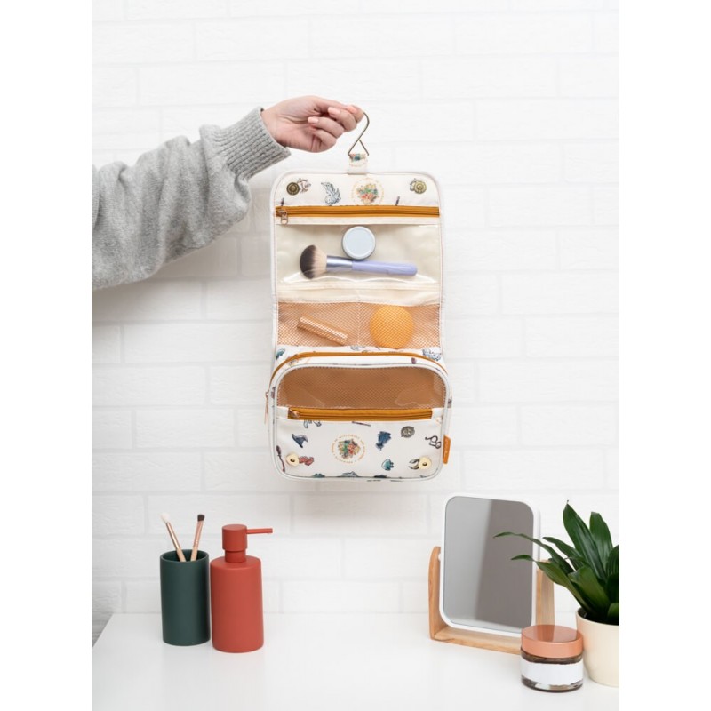Kosmetyczka została wyposażona w różnorodne przegródki i kieszenie, dzięki którym możesz łatwo zorganizować swoje kosmetyki i akcesoria. Rozłóż ją, aby uzyskać dostęp do wielu przegródek, które pomieszczą wszystko, czego potrzebujesz w podróży. Dwie duże kieszenie zasuwane na zamek błyskawiczny zapewnią bezpieczne przechowywanie większych przedmiotów, podczas gdy cztery mniejsze saszetki pomogą Ci utrzymać porządek w drobiazgach.