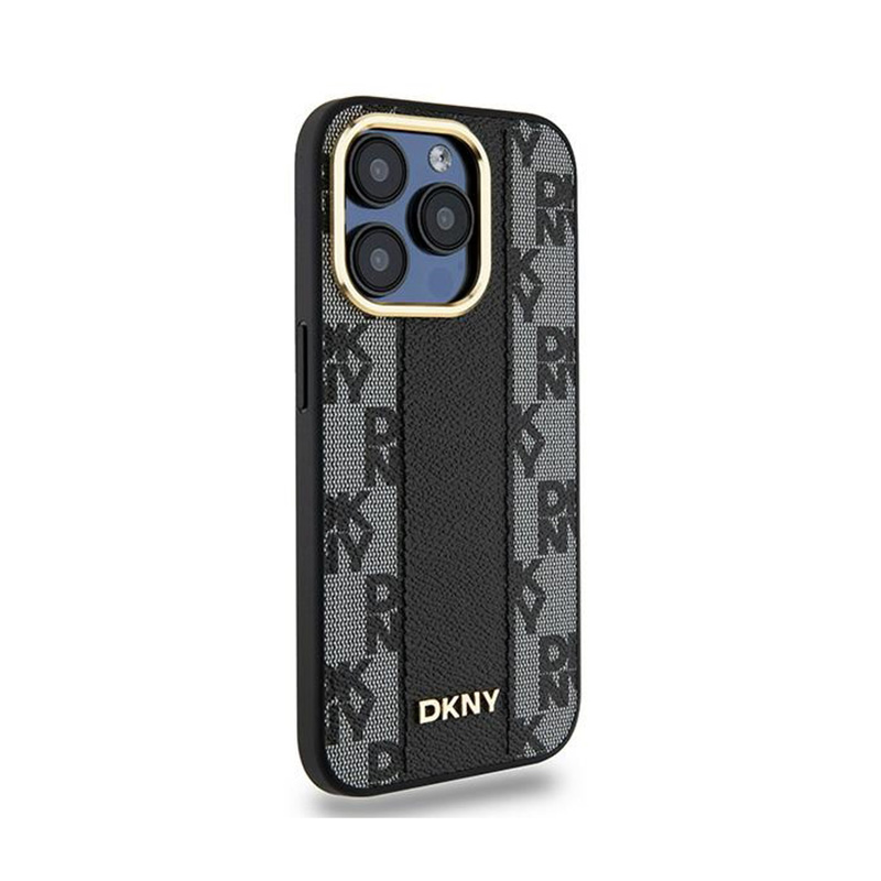 DKNY Leather Checkered Mono Pattern MagSafe - Case for iPhone 15 Pro Max (Black)