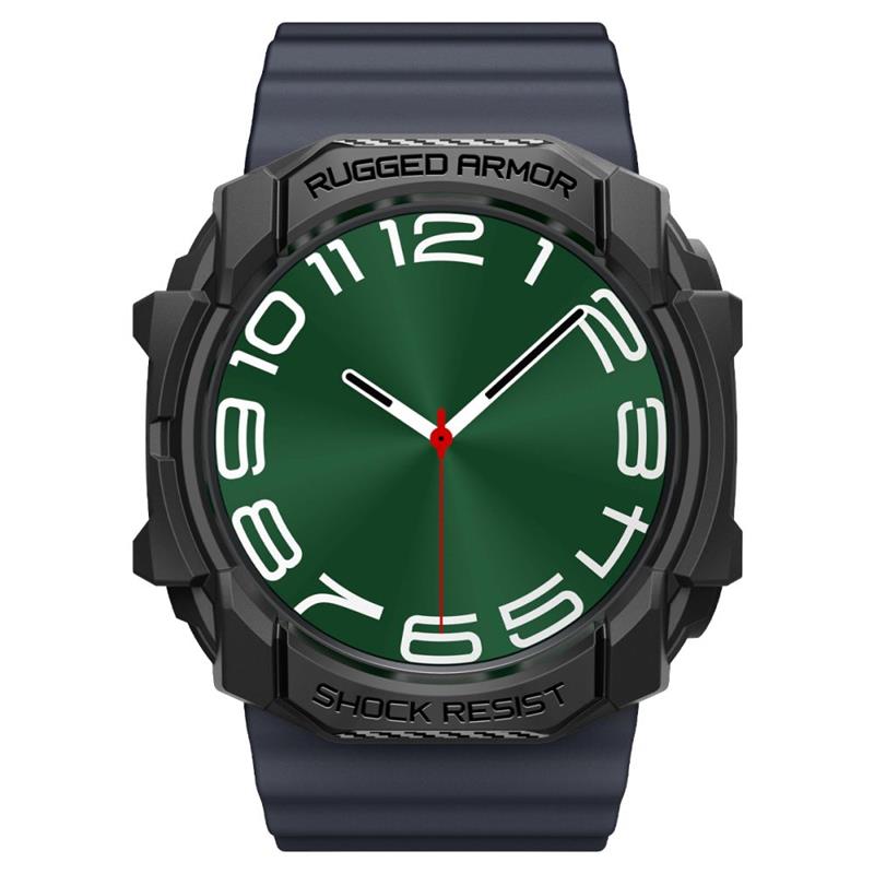 Spigen Rugged Armor for Samsung Galaxy Watch Ultra 47 mm is a protective case whose shell is made of flexible TPU material resistant to abrasion. Raised edges protect against bumps and scratches. Carbon fiber accents add a modern look to the watch.