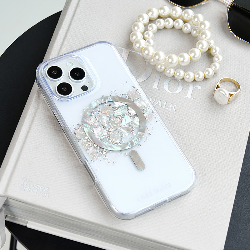 Nombre del prod.Case-Mate Karat MagSafe - Funda para iPhone 16 Pro con decoración de nácar (A Touch of Pearl)