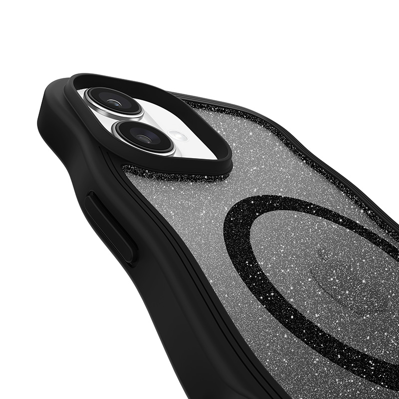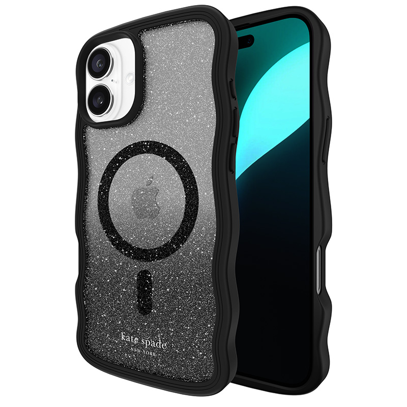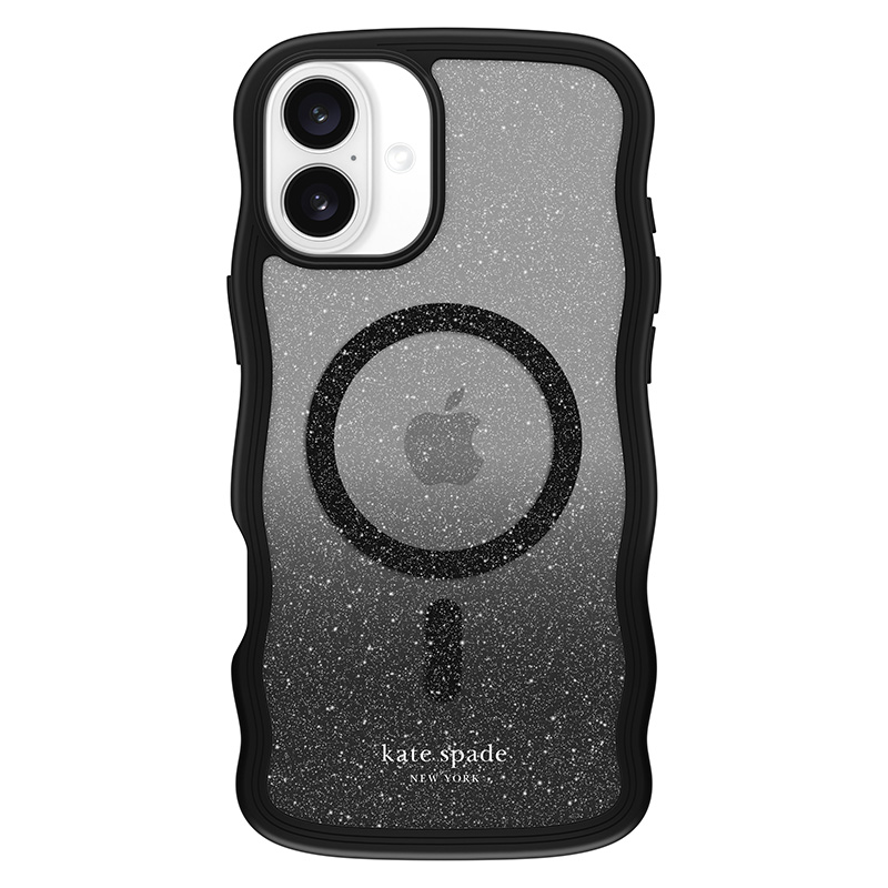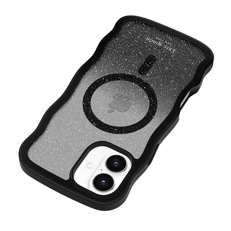 Pouzdro na telefon Kate spade new york Wavy MagSafe dodá vašim zrcadlovým selfie zábavný nádech díky jedinečnému vlnitému designu a černému třpytivému ombré! Toto pouzdro na telefon je vyrobeno tak, aby drželo krok s vaším každodenním seznamem úkolů díky ochraně proti pádu z výšky 10 stop, zatímco vestavěné magnety vám umožní bezdrátově nabíjet a doplňovat během okamžiku.