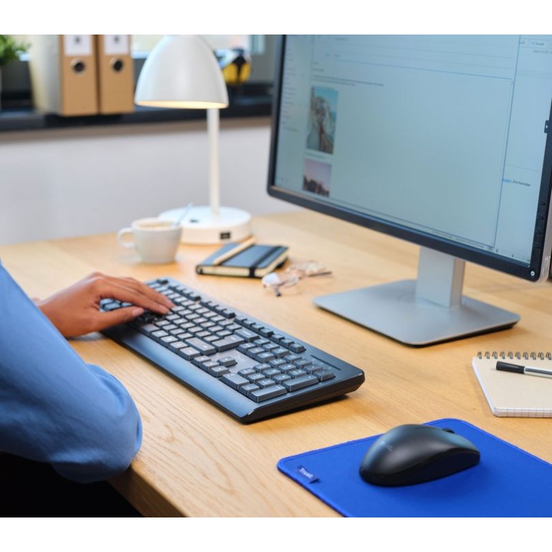 The Trust Primo set is the perfect combination of keyboard and mouse, which allows you to work efficiently and comfortably. The full-size Trust Primo keyboard not only provides functionality, but also comfort with flattened membrane keys that require little force to press. This makes typing more comfortable, even during long work sessions. The keyboard is also spill-resistant, ensuring not only optimal efficiency, but also long-term use.