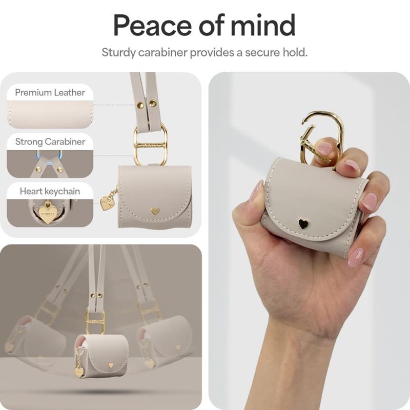 Etui wyposażono w regulowany pasek na ramię oraz karabińczyk, co pozwala na noszenie AirPods na różne sposoby – jako modną mini torebkę na ramieniu lub wygodnie przypięte do smyczy, torebki czy spodni.