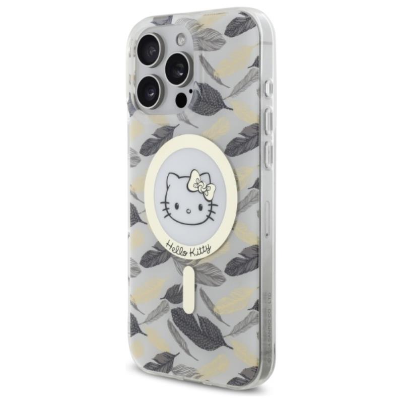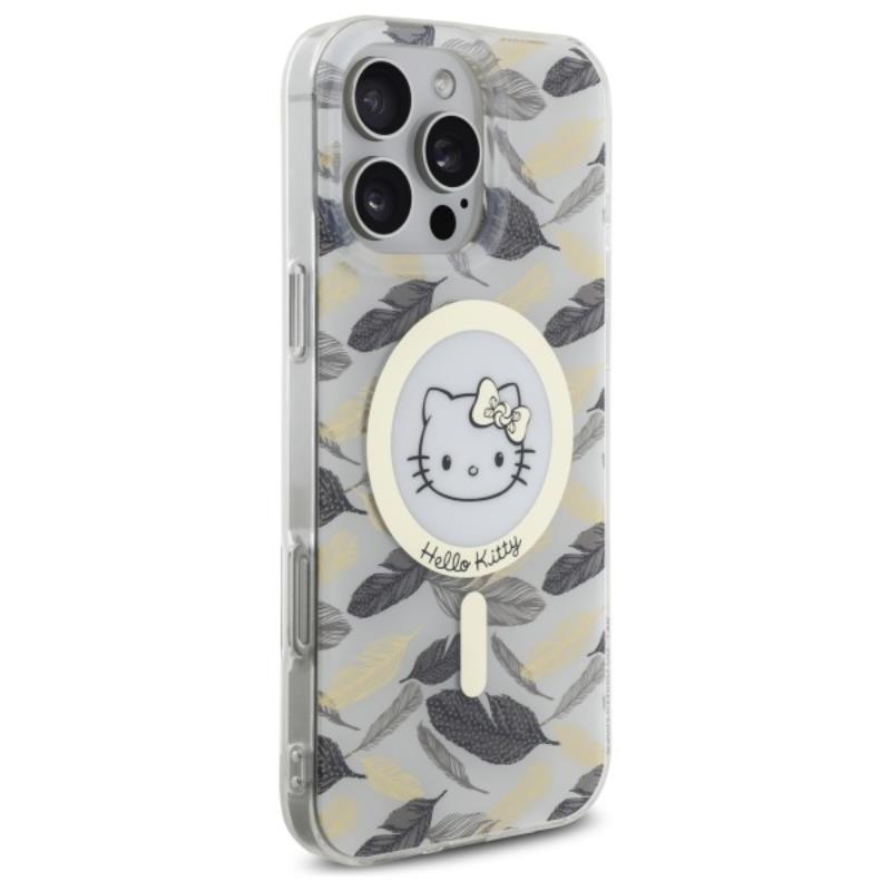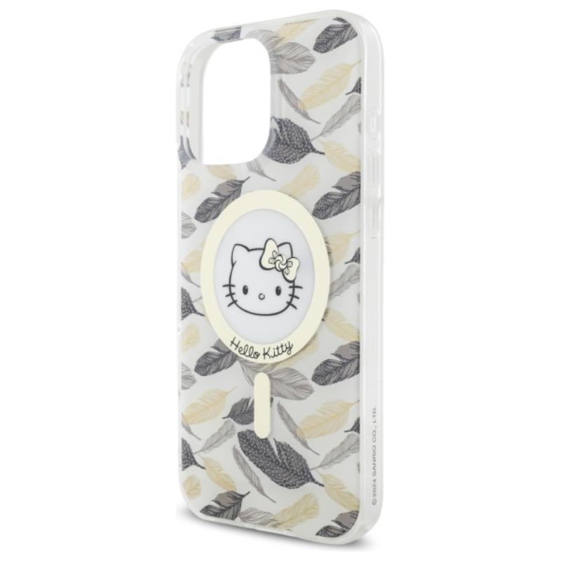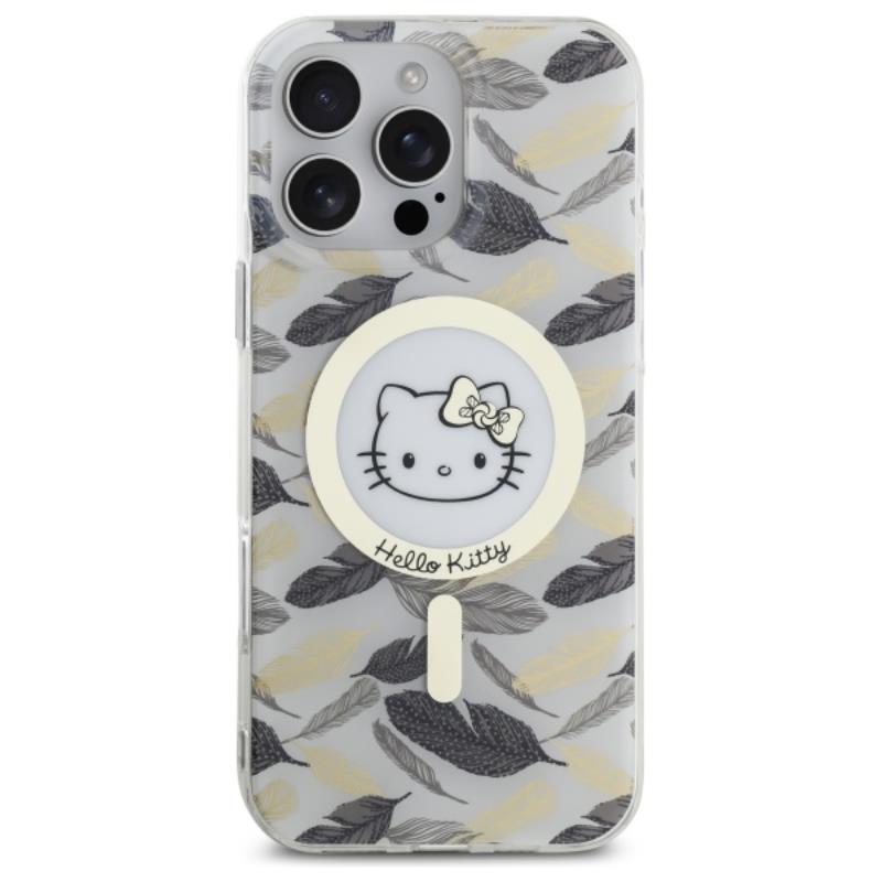 Hello Kitty IML Golden Leaves MagSafe to doskonałe połączenie elegancji, uroku i funkcjonalności. Pokrowiec wyróżnia się subtelnym wzorem piórek i złotym pierścieniem MagSafe, który dodaje wyjątkowego charakteru. Całość dopełnia grafika uroczej postaci oraz logo Hello Kitty.