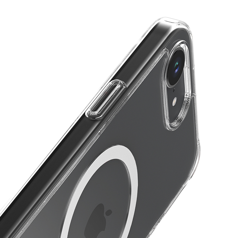 Čiré ochranné pouzdro pro iPhone 16e se zabudovaným magnetem pro MagSafe nabíječku a příslušenství. Díky magnetickému kroužku ukrytému v hybridním plášti (skládajícím se z 39 menších magnetů) nabíječka a další příslušenství MagSafe vždy dokonale padnou na váš telefon.
