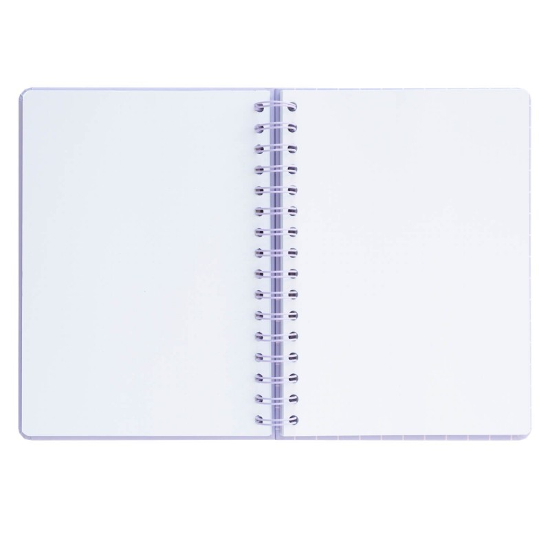 Uvnitř je 90 listů (180 stran) s tečkami, vyrobených z papíru o gramáži 100 g, který zaručuje pohodlné psaní a chrání před prosakováním inkoustu. Kovová spirálová vazba usnadňuje otáčení stránek a elastická gumička chrání zápisník před náhodným otevřením.