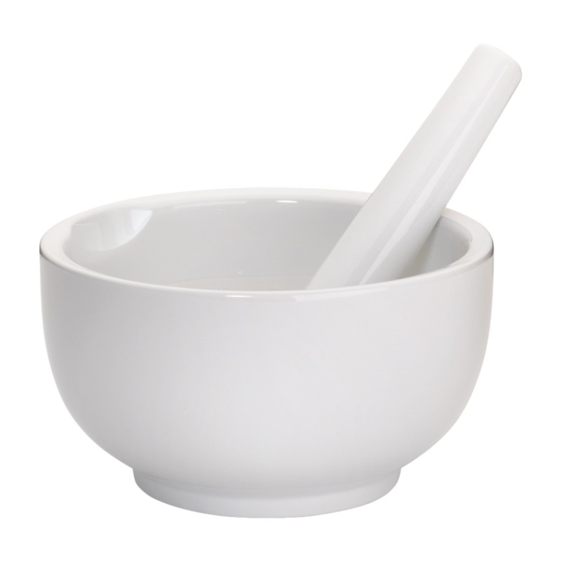 · The rounded tip of the pestle adapts to the shape of the mortar