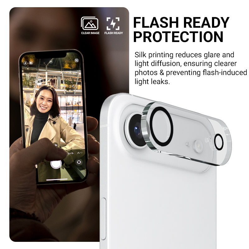 Wysokiej jakości szkło ochronne 9H na główny aparat w iPhonie Air. W przeciwieństwie do innych produktów, szkło Lens Shield™ oferuje podwyższony poziom ochrony całego aparatu głównego, a nie tylko obiektywów. Niekruszące się szkło zachowuje też jednolitą strukturę, dzięki czemu nie rani palców.