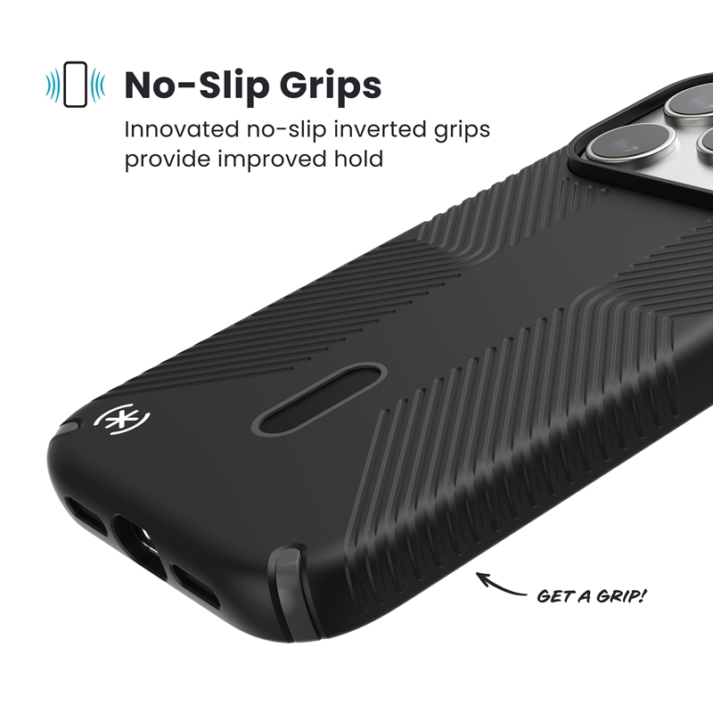 Speck Presidio®2 Grip MagSafe® z technologią antypoślizgową ClickLock™ Interlock to super ochronne etui z wbudowanym magnesem, kompatybilnym z akcesoriami Apple MagSafe®.