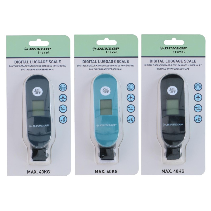 Waga Dunlop oferuje dokładny pomiar do 40 kg, a czytelny wyświetlacz cyfrowy ułatwia odczyt wyniku nawet w słabym oświetleniu. Wyposażona w trwały pasek do mocowania na rączce walizki, umożliwia szybkie i wygodne ważenie każdego rodzaju bagażu.