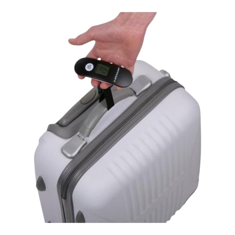 Waga Dunlop oferuje dokładny pomiar do 40 kg, a czytelny wyświetlacz cyfrowy ułatwia odczyt wyniku nawet w słabym oświetleniu. Wyposażona w trwały pasek do mocowania na rączce walizki, umożliwia szybkie i wygodne ważenie każdego rodzaju bagażu.