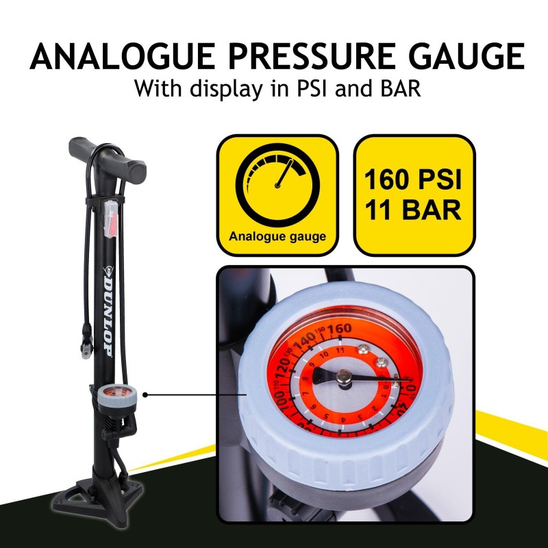 Dunlop Fahrradpumpe mit Manometer: Leistungsstark, präzise und einfach zu bedienen