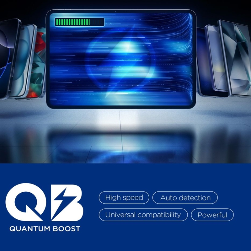 Technologia Quantum Boost automatycznie dopasowuje parametry ładowania do podłączonego sprzętu, zwiększając efektywność i skracając czas potrzebny do naładowania. Za bezpieczeństwo odpowiada zestaw zaawansowanych funkcji ochronnych: Overcharge Prevention, Voltage Matching i Voltage Regulation, które chronią podłączone urządzenia przed przeładowaniem, nieprawidłowym napięciem i nadmiernym prądem.